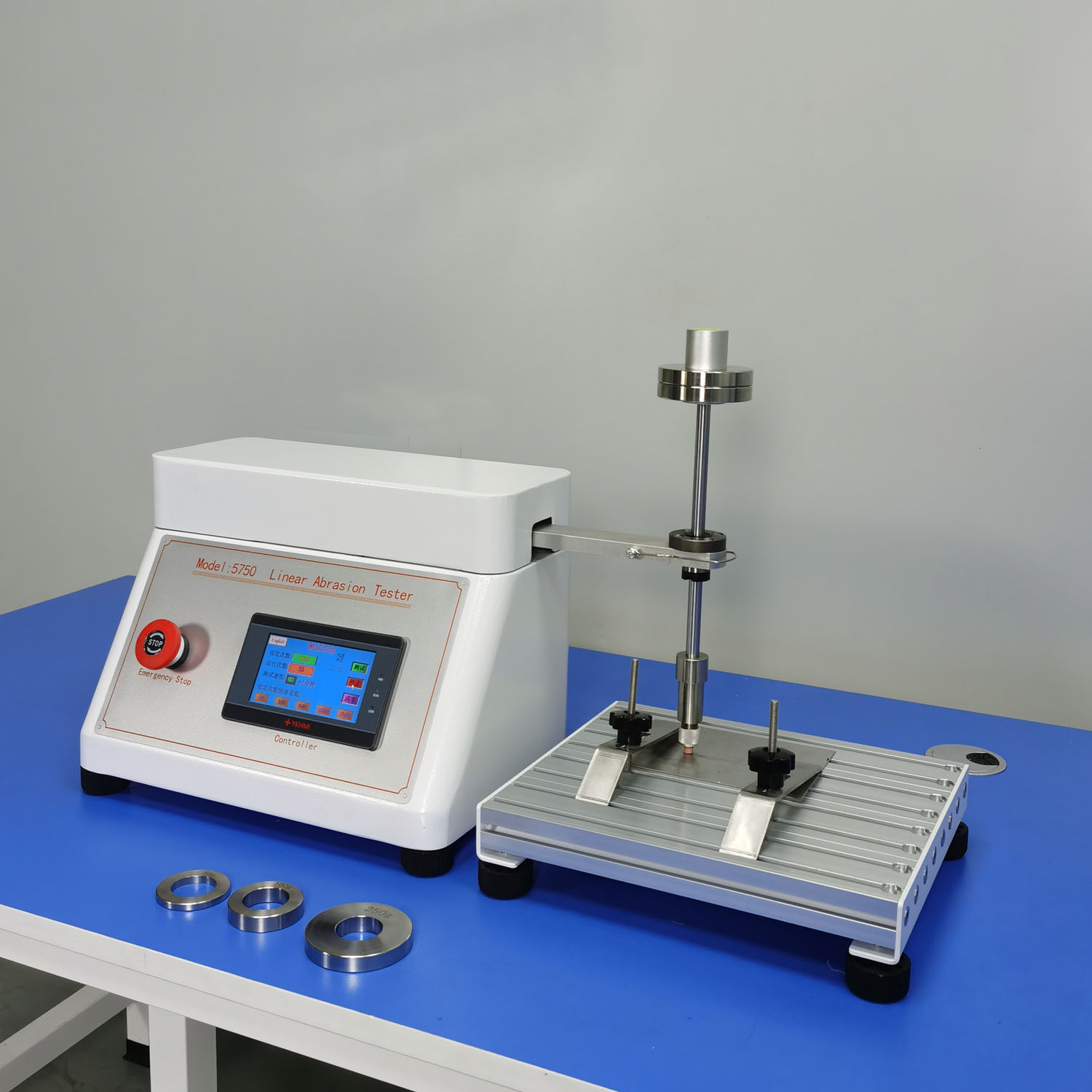 线性耐磨试验机 LC-5750 该仪器适用于测试塑料、汽车配件、橡胶、皮革和纺织、电镀、自由拆卸的组件、漆品、印刷图样等产品的耐磨损性能。既能用于评估产品的耐磨性,又能用于评价产品的耐刮伤性 ( 单次或多次刮擦 ) 和颜色的传递性。干磨耗测试、湿磨耗测试均可进行。它能够测试任何尺寸大小或任何形状的样品,对于带轮廓表面和抛光表面特性产品的磨耗测试极为理想 ( 如:电脑鼠标和其它电脑或 IT 产品塑胶面漆耐磨性测试 ) 。 测试对象:涂层、镀层或其他表面处理 适用底材:平面、圆弧面 摩擦测头:橡皮治具,酒精耐磨治具 移动行程:0.5", 1", 2" 3" 和 4" 移动速度:10-70次/分钟,数字显示 设定次数:0-999999次 显示方式:LED液晶计数器 举杆自重:350G 可选荷重:250G砝码3个 外形尺寸:460*230*330MM 机台重量:15KG