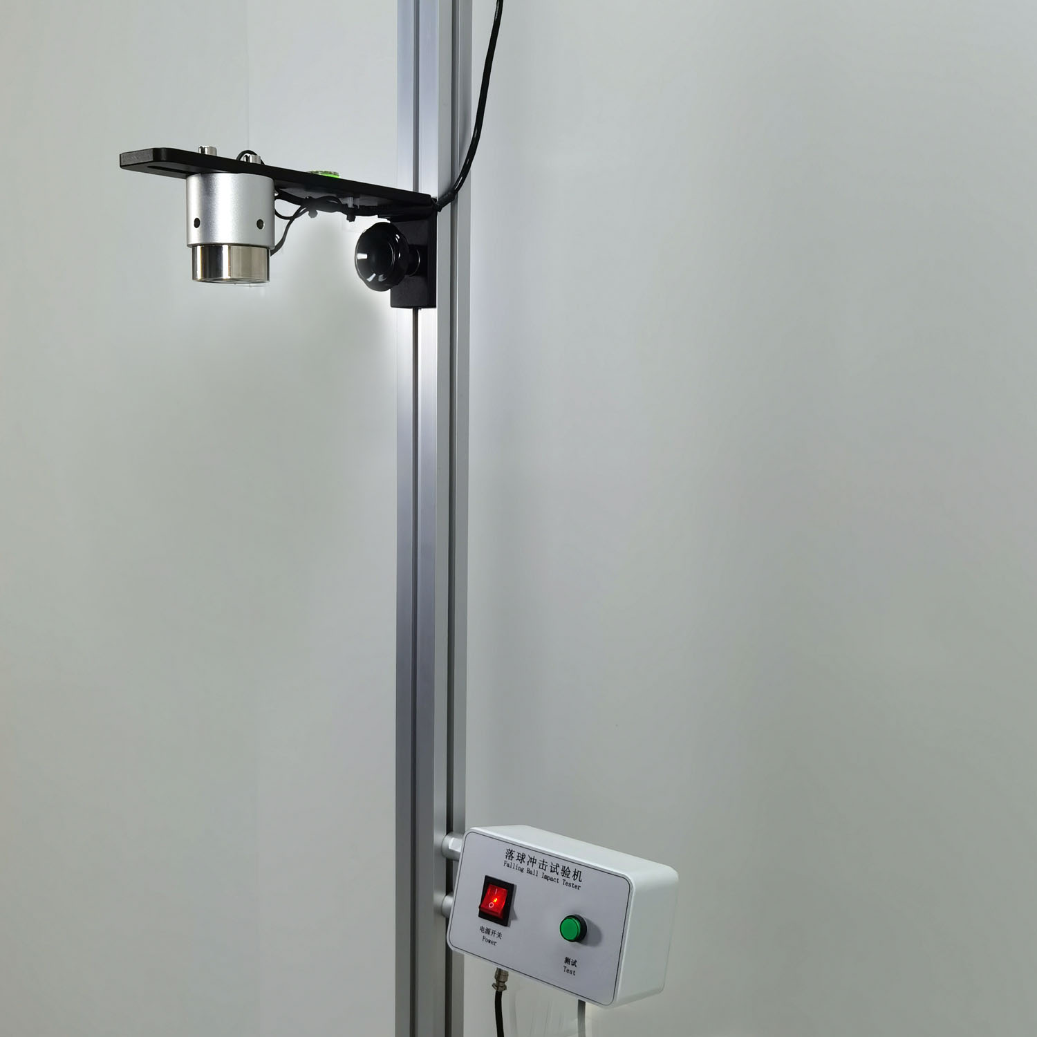 落球冲击试验机 LC-716 本机采用直流电磁控制方式,将钢球置于电磁吸盘下钢球自动被吸上,按下跌落键,吸盘瞬间释放钢球,钢球将作自由落体试验,冲击试件表面。跌落高度可作上下调整,并附有高度标尺,可得知部品跌落高度。 以规定重量之钢球,在一定的高度,自由落下,打击试料,视其受损程度。 冲击高度:20~1900mm可调 跌落高度标尺:最小指示1cm 钢球重量选择:50g 控制方式:直流电磁控制 体 积:约W450×D500×H2200mm 重 量:约35Kg 电 源:1∮ AC220V 1A 直流电磁吸盘吸附钢球,安全可靠。 机箱为冲孔A3钢板静电喷涂。 多种测试钢球可选。 跌落高度依刻度钢尺,直观易读。 多种钢球型号可选。 1. 跌落试验机主机 1台 2. 钢球 1套 3. 夹具 1副
