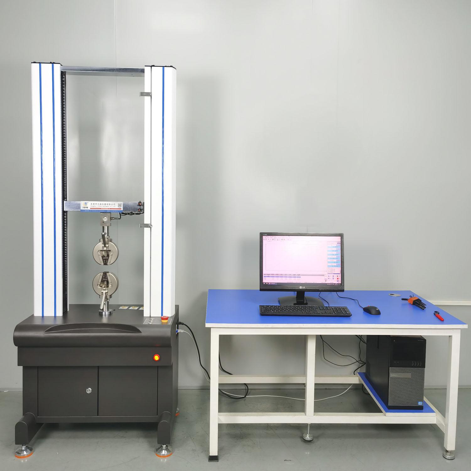 电脑式龙门拉压力试验机LC-201A 电脑龙门式拉力试验机,采用高精度力值传感器,通过全电脑测控技术,精密滚珠丝杆传动,微步细分马达驱动,具有测试简便,力值精准,速度恒定,造型美观,运行平稳安静等诸多优点。可做材料拉伸,压力、剥离、拉伸、撕裂、屈服、抗张等多种测试项目。 电脑式龙门拉压力试验机可做可对橡胶、塑料、塑胶、薄膜、纺织、纤维、纳米材料、高分子材料、复合材料拉伸,压力、剥离、拉伸、撕裂、屈服、抗张等多种测试项目。 ASTM D638 塑料拉伸性能的测试方法 符合ASTM D903、GB/T16491、GB/T1040、GB/T8808、GB13022、GB/T 2790/2791/2792、CNS-11888、JIS K6854, PSTC-7等多项国内国际测试标准。 容 量:50、100、200、500、1000、2000、3000KG 分 解 度:1/200,000 精 度:≤±1% 测试行程:500mm 夹具宽度:30mm 显 示:中文及英文,电脑屏显示 测试速度:0.01~300.00 mm/min可任意设定 位移显示:0.001mm 速度精度:±1% 功 率:450W 外形尺寸:720×380×1500mm 重 量:180KG 电 源:AC220V,50HZ,5A 测试模式:定力值、定位移、定时间测试任意设定 采用windows工作平台,参数设定全部以对话框的形式处理,操作简单。 电脑液晶屏显示,实时力值、峰值、速度、测试次数、力值曲线多图直观显示。 设计人性化,操作简单易行。 全电脑模式操作。 仪器存储:无限次测试结果,可删除任意一组或多组。 打印输出:连接电脑通过普通A4纸打印机输出。 力量单位:N、kN、kgf、gf、lbf可选。 位移单位:mm、cm、in可选 强度单位:Pa、kPa、Mpa、kgf/cm2、lbf/in2可选。 保护措施:超行程保护,超力值保护,超时间保护,外限位保护等多等保护方法。高灵敏度,瞬时判定压溃并能自动停机 全中文或英文直观显示,测试界面一目了然。 测试、上升、下降、回位速度任意输入设定,精准控制。 测试完成自动快速回位,避免长时间等待,加快测试效率。 测试结果:测试完成自动记录并保存,无须手工存储。 多测试项目,多单位可选,满足多种测试标准。 精度高:采用高精度S型传感器,最大精度可达0.25%。 内置专用校准模式,便于第三方计量校准机构对仪器进行校准认证。 台湾TBI高精度滚珠丝杆传动,高效、耐用,直线度高。 高性能电机,噪音低,振动小,使用寿命长。 优质S型合金钢传感器,精度高,抗外力、抗超载能力强。 机器外箱采用A3钢板,静电喷粉吸塑涂装,造型美观大方。 主 机:1台 拉力夹具:1副(已装机) 电 源 线:1条(220V 10A) 使用说明:1本 软件 U盘:1个